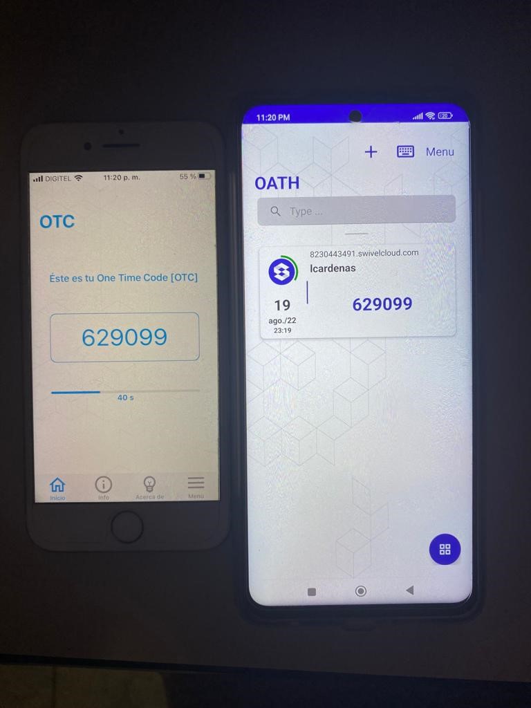 Step 15: The Authcontrol V5 app and the AuthControl Authenticator (AMA) app remain provisioned and synced with the same OATH code on both phones (see figure 77).